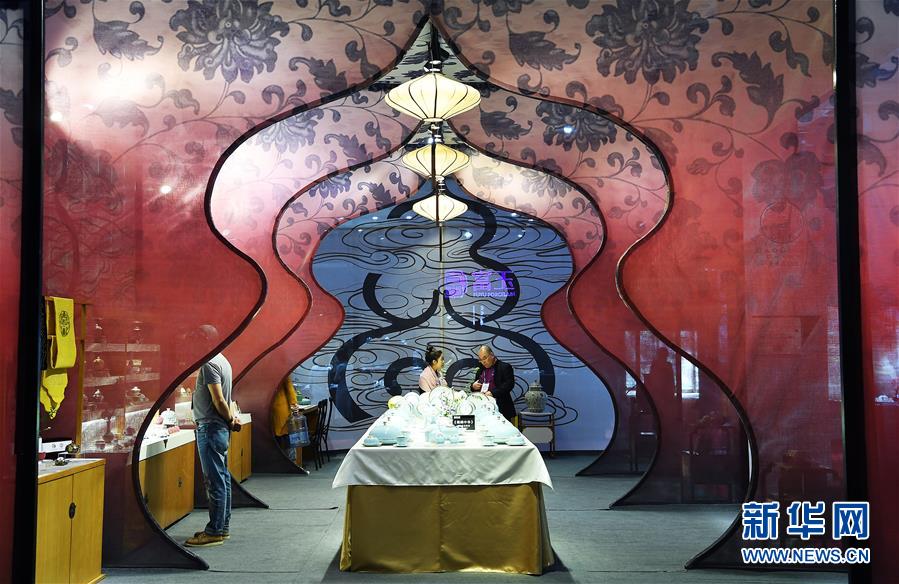 參觀者在參觀中國(guó)景德鎮(zhèn)國(guó)際陶瓷博覽會(huì)的展臺(tái)(2018年10月18日攝)。新華社記者 萬(wàn)象 攝
