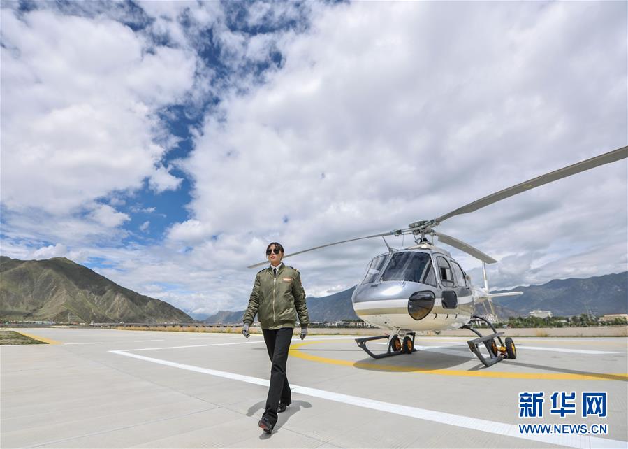 堅熱益西從直升機前走過(8月7日攝)。新華社記者晉美多吉攝
