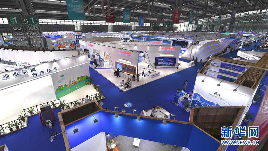 這是10月15日拍攝的2019中國海洋經(jīng)濟(jì)博覽會(huì)現(xiàn)場(chǎng)。 當(dāng)日,2019中國海洋經(jīng)濟(jì)博覽會(huì)在深圳開幕,大批海洋“大國重器”及高新技術(shù)研發(fā)成果亮相。 中國海洋經(jīng)濟(jì)博覽會(huì)被譽(yù)為“中國海洋第一展”。2019中國海洋經(jīng)濟(jì)博覽會(huì)以“藍(lán)色機(jī)遇、共創(chuàng)未來”為主題,吸引450余家企業(yè)和機(jī)構(gòu)參展,將重點(diǎn)圍繞現(xiàn)代港口建設(shè)、海洋高新技術(shù)與裝備制造、海洋可再生能源利用、海水淡化與綜合利用等熱點(diǎn)領(lǐng)域,推出新技術(shù)成果,推進(jìn)中外企業(yè)洽談合作。 新華社記者毛思倩攝