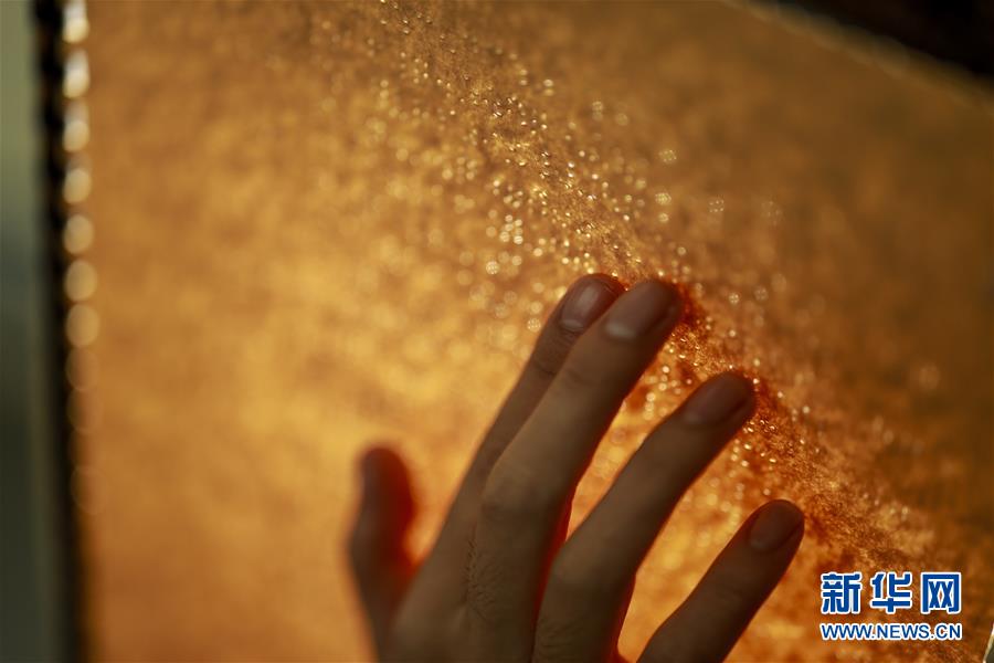 重慶市特殊教育中心6年級(jí)學(xué)生王太樊在用手摸索盲文樂譜(10月10日攝)。 新華社記者 劉潺 攝