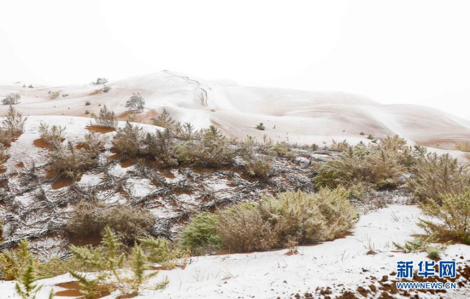 大漠沙覆雪:寧夏沙波頭迎來降雪