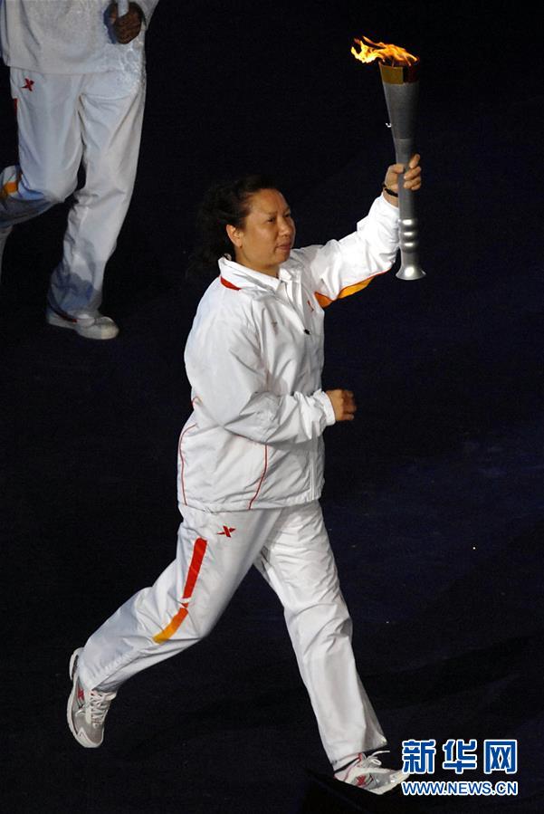 圖為韓愛萍在武漢舉行的第六屆全國城市運動會開幕式上傳遞火炬(2007年10月25日攝)。新華社記者王頌攝