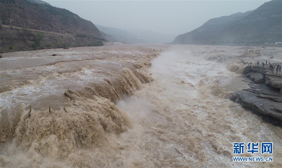 壺口瀑布水量增大 引眾多游客觀賞