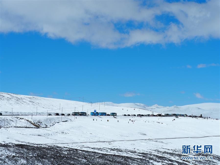 10月17日,在川藏線高爾寺山至理塘路段,成隊的車輛停在觀景臺附近。 新華社記者 王迪 攝