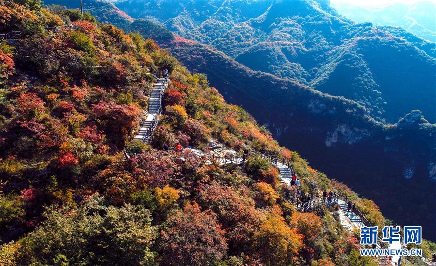 這是10月19日無人機拍攝的河北省涉縣太行紅葉大峽谷景色。新華社記者王曉攝