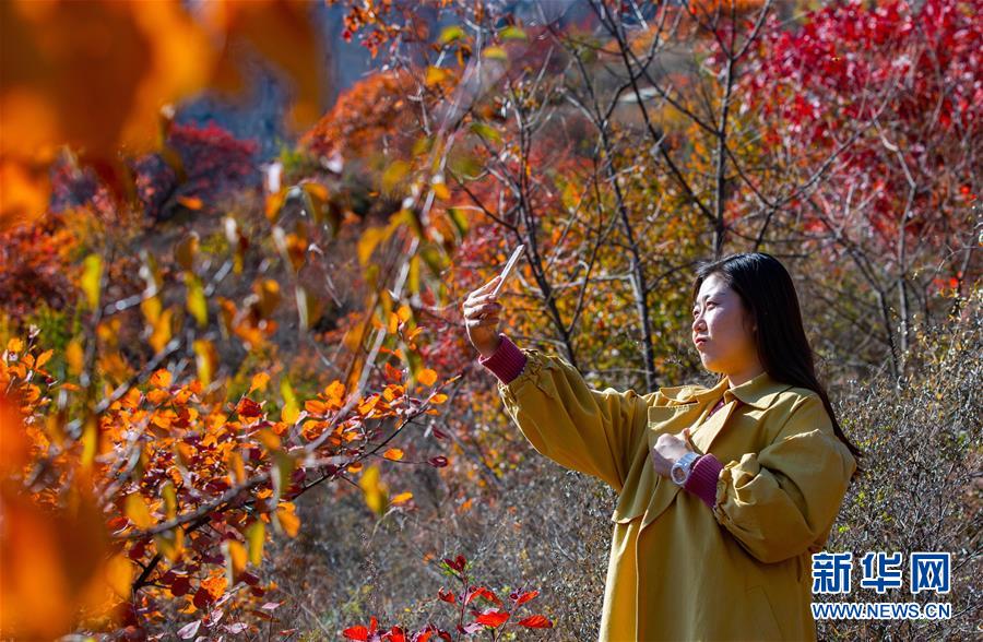 10月24日,游客在河北省武安市賀進(jìn)鎮(zhèn)后臨河村拍照留念。新華社記者王曉攝