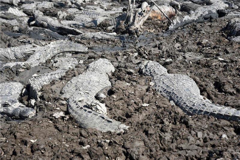 當?shù)貢r間2016年6月24日,巴拉圭General Diaz,巴拉圭與阿根廷邊境遭遇嚴重干旱,皮科馬約河河水枯竭,凱門鱷在水塘內。