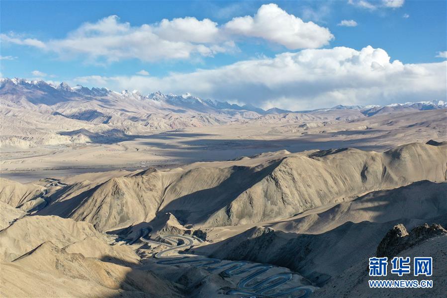 這是10月20日無人機拍攝的新疆塔什庫爾干塔吉克自治縣吾格亞提盤山公路。在中國西陲的新疆帕米爾高原,塔什庫爾干塔吉克自治縣縣城到瓦恰鄉(xiāng)之間有條蜿蜒的盤山公路,海拔超4200米,全長36公里,最大落差近1000米,被當?shù)厝朔Q為“高原天路”。盤山公路彎曲盤旋的走勢與周邊雄渾壯麗的風光,共同構(gòu)成一幅壯美畫卷。這條公路名為吾格亞提盤山公路,2019年7月投入使用,便利了山區(qū)農(nóng)牧民的出行。新華社記者丁磊攝