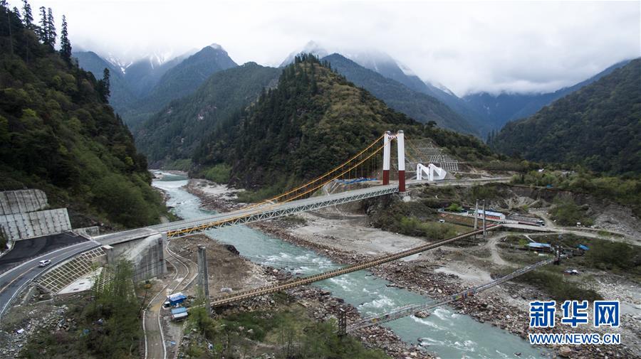 這是三個時期的林芝易貢大橋(2016年3月29日無人機拍攝)。 新華社記者 普布扎西 攝