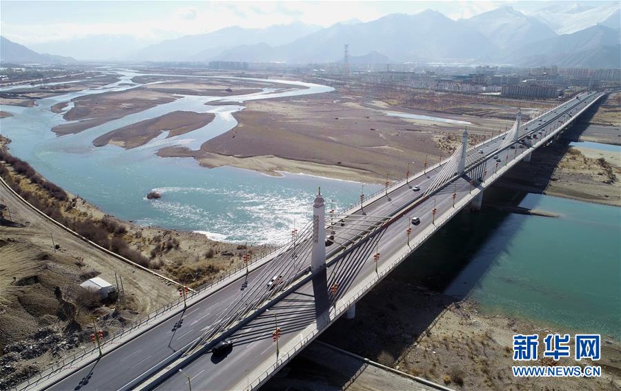 拉薩市環(huán)城路納金大橋段(4月3日無(wú)人機(jī)拍攝)。 新華社記者 晉美多吉 攝