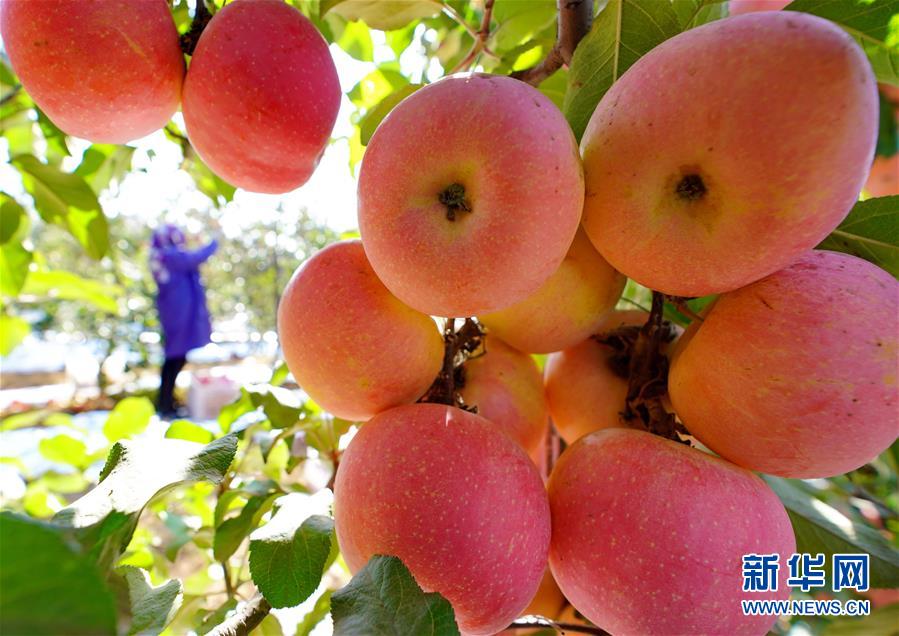 10月25日,灤州市王店子鎮(zhèn)的一位果民在采摘蘋果。新華社記者楊世堯攝