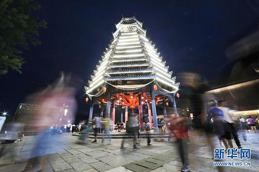 7月2日,游客在丹寨萬達(dá)小鎮(zhèn)游覽。新華社記者歐東衢攝
