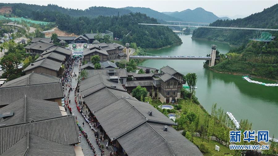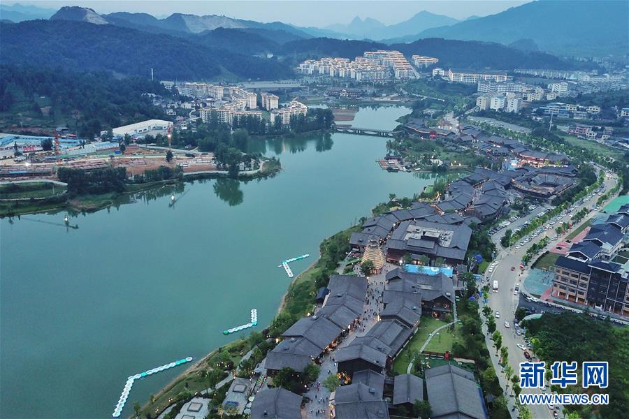 7月2日無人機拍攝的丹寨萬達(dá)小鎮(zhèn)一角。2017年7月,貴州省丹寨縣的丹寨萬達(dá)小鎮(zhèn)對外開放。兩年來,丹寨萬達(dá)小鎮(zhèn)游客接待量持續(xù)增長,為700余名貧困戶提供就業(yè)崗位,有力助推了丹寨縣的脫貧攻堅工作。新華社記者歐東衢攝