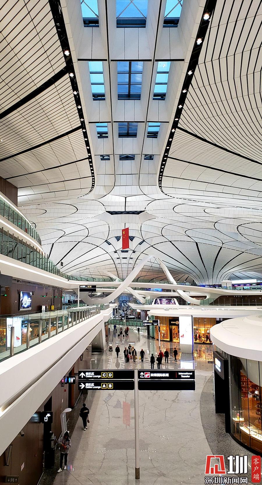 北京大興機(jī)場(chǎng)橫跨兩市,距離天安門(mén)46公里,首都機(jī)場(chǎng)67公里,北京城市副中心54公里。見(jiàn)圳客戶端、深圳新聞網(wǎng)記者劉東博攝