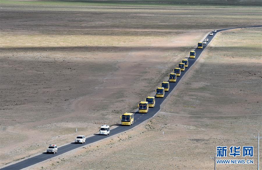 藏北那曲市尼瑪縣榮瑪鄉(xiāng)群眾在遷往拉薩的途中(2018年6月18日攝)。新華社記者覺果攝