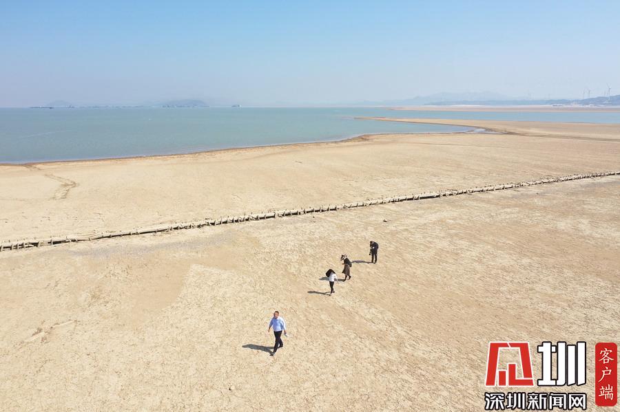 江西九江,隨著水位持續(xù)下降,豐水期浸泡在鄱陽湖底被譽為“中國最長的湖中古木石橋”露出水面。