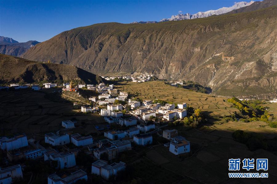 10月29日無人機(jī)拍攝的鄉(xiāng)城縣青麥鄉(xiāng)南吾村藏鄉(xiāng)田園風(fēng)光。新華社記者江宏景攝