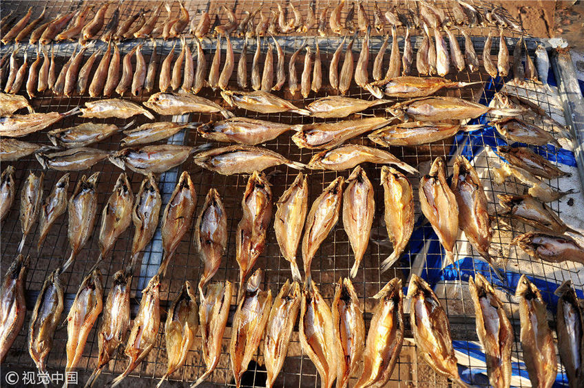 青島漁民古法曬魚 口感勁道別有風(fēng)味