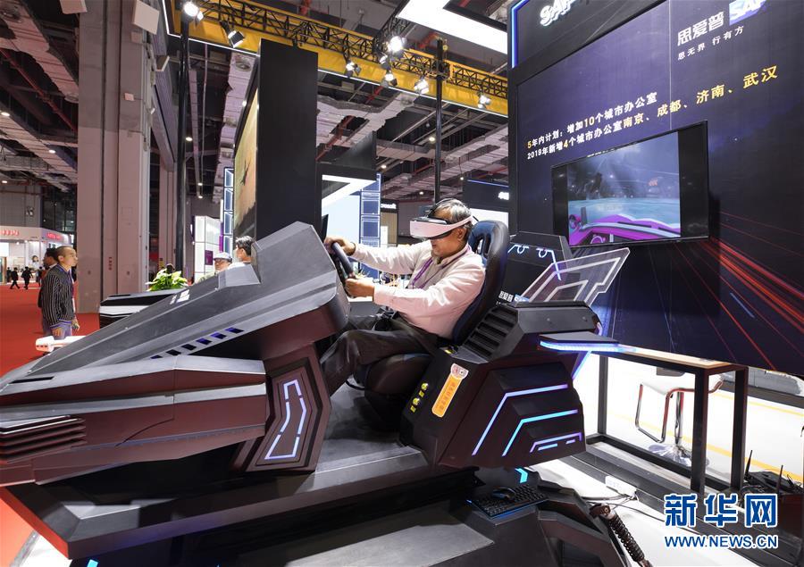 11月5日,一名參觀者在第二屆進(jìn)博會科技生活展區(qū)體驗虛擬現(xiàn)實賽車。新華社記者金立旺攝