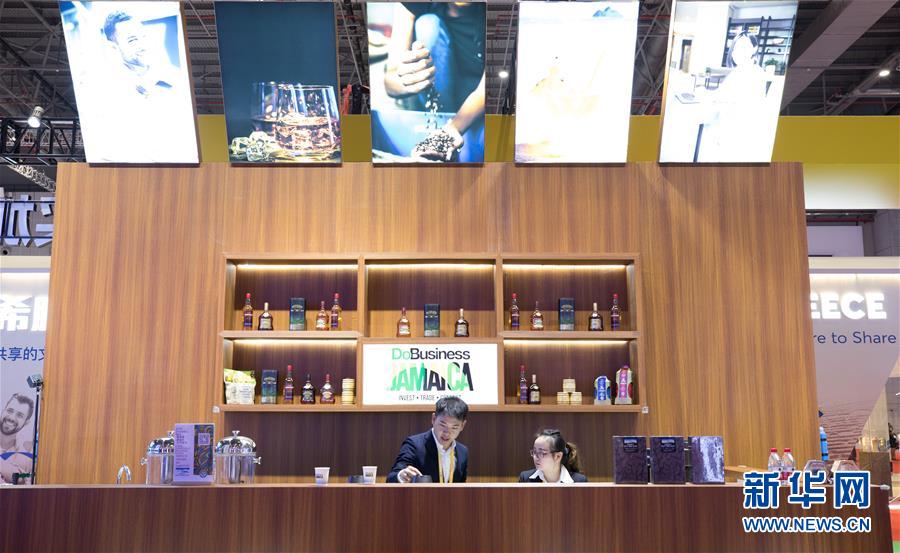11月5日,工作人員在牙買(mǎi)加國(guó)家館整理展品。新華社記者金立旺攝
