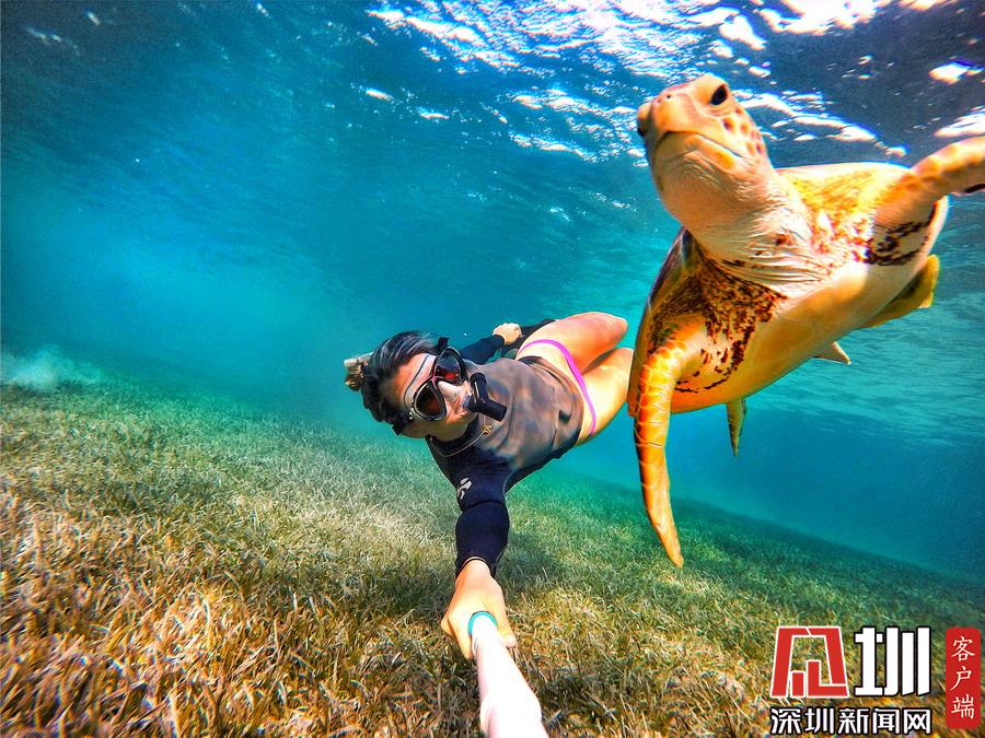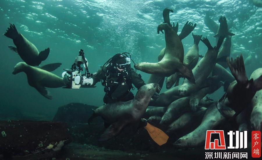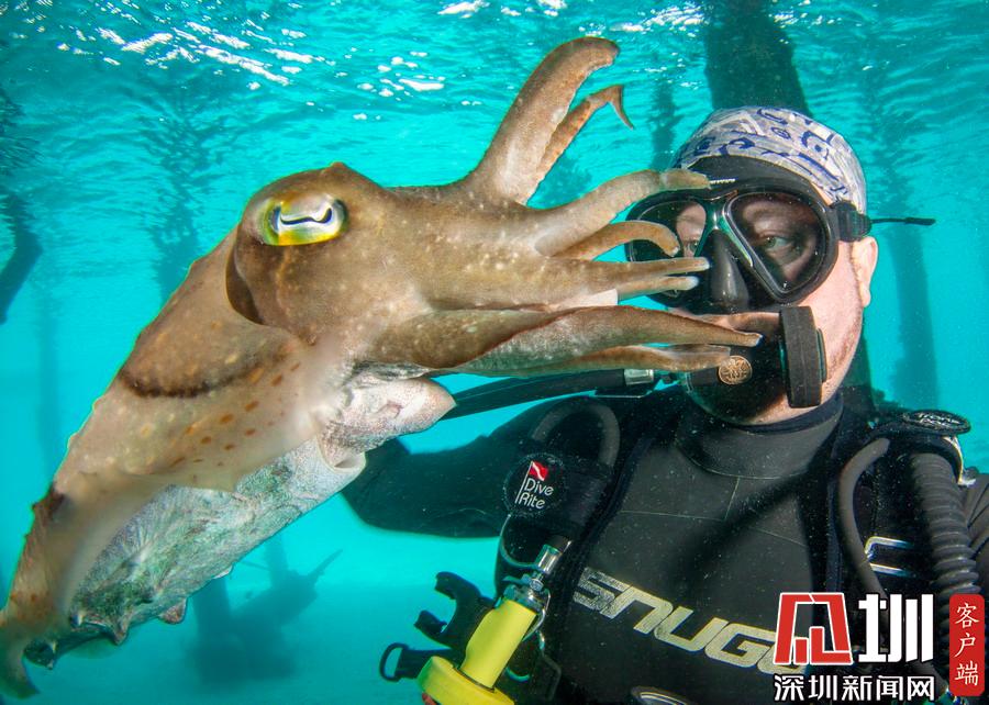 2019年11月12日報道(具體拍攝時間不詳),許多潛水愛好者都會把遇見海底動物當作一種幸運,但如果它們過分熱情,你能扛得住嗎?