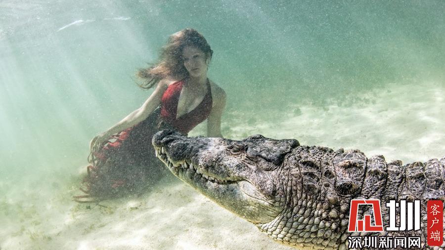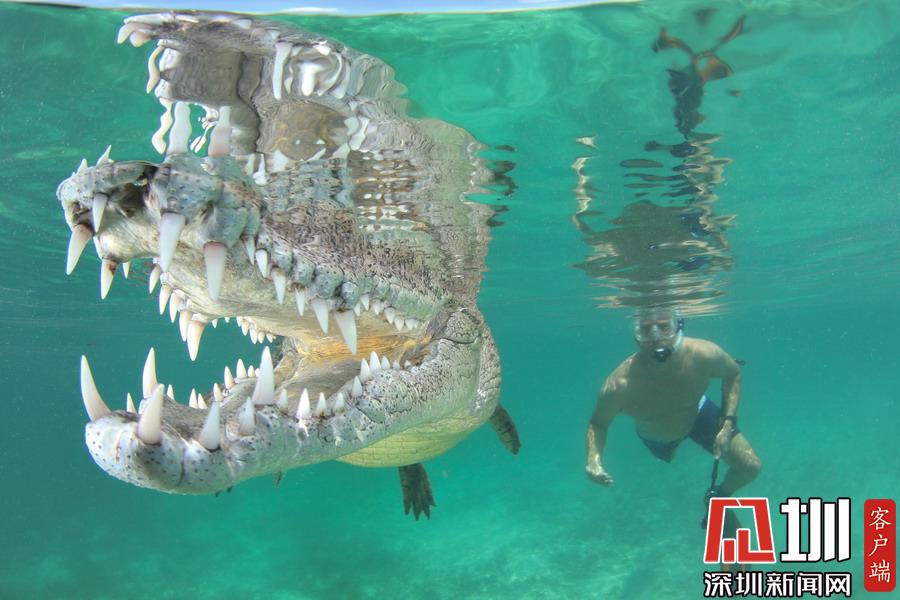 2018年7月16日報道(具體拍攝時間不詳),在墨西哥Chinchorro Banks水下,這些鱷魚們艷??刹粶\,它們有機會同美女模特在水下同游。鏡頭里,它們露出獠牙鋸齒,看上去就像是開心大笑的樣子,想必是和美女同游才如此樂得合不攏嘴。而能敢于直面這些兇殘的肉食性動物,這些美女模特也顯得是勇氣十足,令人欽佩。攝影師Ken Kiefer拍攝了這些震撼畫面。