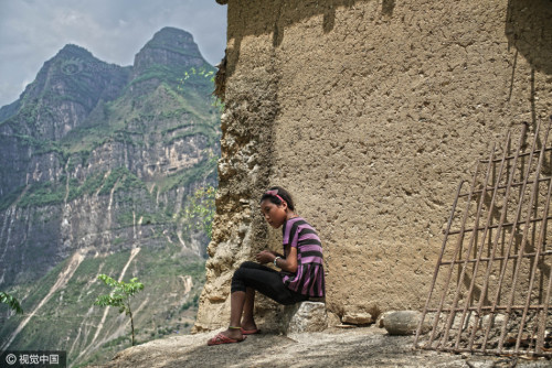 阿土勒爾村過去建有連接山下的索道,不過開動一次索道需要幾百度電,村里人根本用不起,后來索道就拆除了。阿皮幾體告訴記者,如果單從安全問題考慮,在現(xiàn)有的崖壁道路上用鋼筋焊接的梯子代替藤梯,再添加防護欄,怎么也得耗資幾百萬。圖片來源:視覺中國