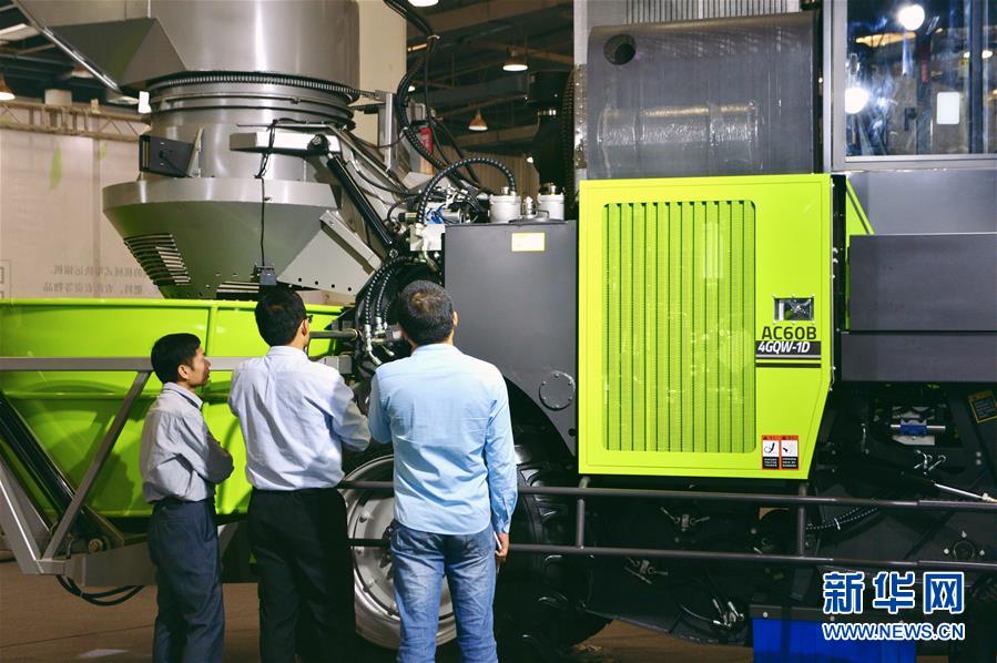 11月16日,參觀者在展會(huì)現(xiàn)場參觀甘蔗收割機(jī)械設(shè)備。