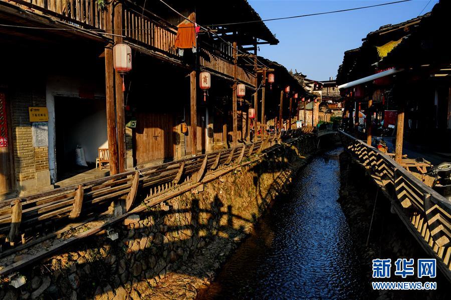 游客在武夷山下梅村游覽(11月5日攝)。福建省武夷山市下梅村是“中國(guó)歷史文化名村”,這里歷史悠久,人文薈萃,至今保存著70余幢明清時(shí)代的古民居。人工運(yùn)河穿村而過(guò),古民居、涼亭、古街等構(gòu)成了別具特色的江南水鄉(xiāng)風(fēng)景。新華社記者馬平攝