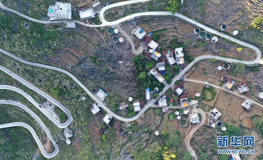 廣西大化瑤族自治縣百馬鄉(xiāng)百馬村群眾的家庭水柜分布在房前屋后(11月14日無(wú)人機(jī)拍攝)。新華社記者黃孝邦攝
