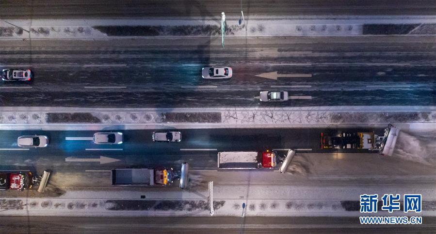 11月17日,在長(zhǎng)春市南關(guān)區(qū)衛(wèi)星路快速路上,清雪車輛列隊(duì)清理路面積雪(無(wú)人機(jī)拍攝)。 當(dāng)日,吉林省長(zhǎng)春市遭遇強(qiáng)降雪天氣,長(zhǎng)春市城市管理局及時(shí)啟動(dòng)清雪預(yù)案。截至17日17時(shí),全市共出動(dòng)環(huán)衛(wèi)工人1.4萬(wàn)余名,環(huán)衛(wèi)清雪車輛1400余臺(tái),外雇社會(huì)化運(yùn)雪車輛1600余臺(tái)。 新華社記者 張楠 攝