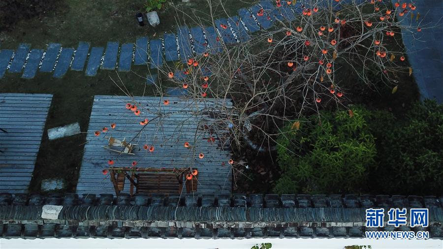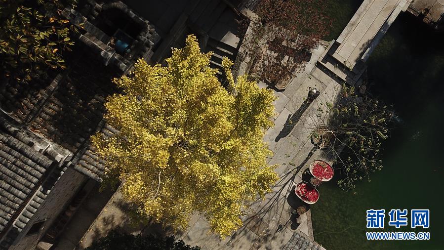 這是11月15日無人機拍攝的安徽黟縣宏村一家民宿的院落。新華社記者張端攝