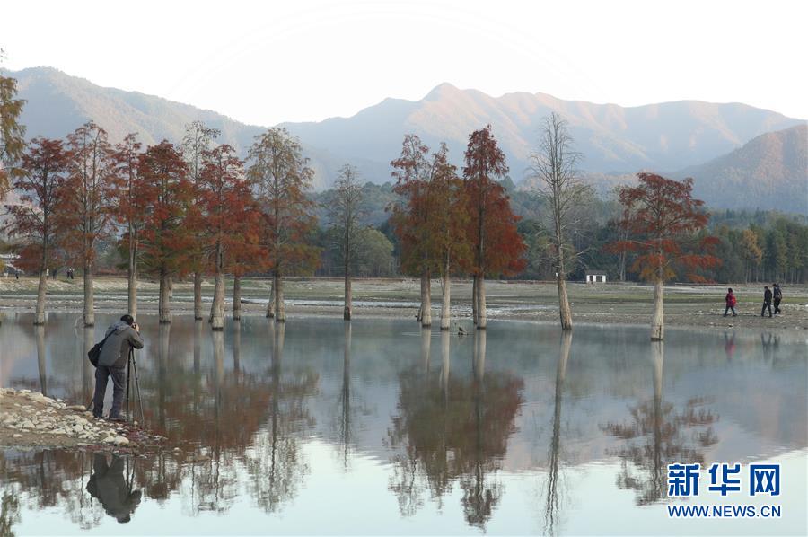 11月14日,一名游客在安徽黟縣奇墅湖拍照。新華社記者韓曉雨攝
