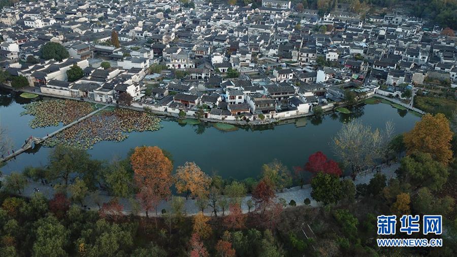 這是11月15日無人機拍攝的宏村風景區(qū)晨景。新華社記者韓曉雨攝
