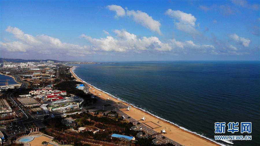11月22日無人機(jī)拍攝的日照市萬平口海濱風(fēng)景區(qū)。山東省日照市萬平口海濱風(fēng)景區(qū)是當(dāng)?shù)芈糜蔚囊粡垺懊?,該景區(qū)憑借優(yōu)美的海灘、良好的水質(zhì)吸引了不少游客。新華社記者王凱攝