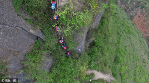 實拍懸崖村的“雙十一” 背著快遞包裹上天梯