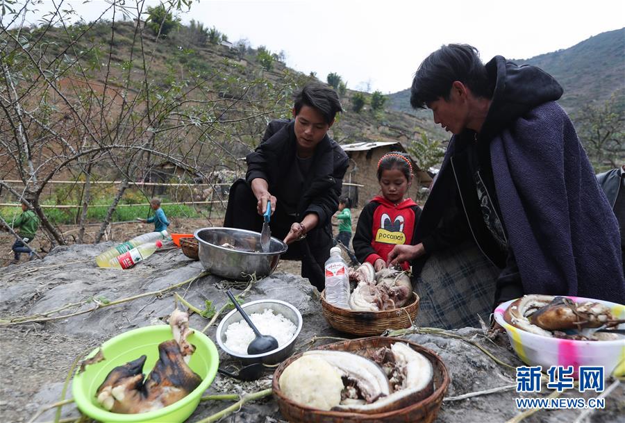 11月24日,在昭覺縣支爾莫鄉(xiāng)阿土列爾村,當?shù)鼐用駵蕚涫焓场⒕频仁澄锛雷?,并相互贈送?1月20日至26日是四川省涼山彝族自治州大小涼山彝族群眾傳統(tǒng)節(jié)日——彝族年,懸崖上的阿土列爾村的彝族群眾殺年豬、祭祀和走親拜年,慶祝一年一度的彝族年。阿土列爾村是“懸崖村”,位于四川省涼山彝族自治州昭覺縣支爾莫鄉(xiāng),坐落在海拔1400-1600米山坳中,這里居住著60多戶彝族群眾,村民走出大山,需要攀爬懸崖。新華社記者江宏景攝
