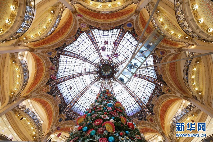 這是11月14日在法國巴黎老佛爺百貨公司拍攝的巨型圣誕樹。 近日,法國巴黎老佛爺百貨公司立起巨型圣誕樹,璀璨的燈光和精美的造型設(shè)計(jì)吸引了眾多市民和游客前來參觀。人們還可以在商場三樓處踏上高16米、長8米的玻璃走廊,與圣誕樹“親密接觸”。 新華社記者高靜攝