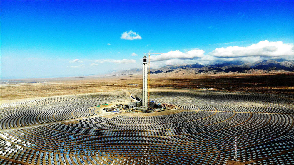 2018年10月13日,地處青海省海西州德令哈市的中控太陽(yáng)能發(fā)電有限公司10兆瓦塔式熔鹽光熱電站。位于中國(guó)西部的青海省,有“三江源”“中華水塔”之稱。如今,青海清潔能源正在從“風(fēng)生水起”走向“風(fēng)光無限”。青海太陽(yáng)能資源約占中國(guó)的11%,光熱資源平均年輻射總量可達(dá)每平方米5860—7400兆焦耳,僅次于西藏;同時(shí),該省可用于新能源開發(fā)的荒漠土地面積約10萬平方公里,裝機(jī)規(guī)模可達(dá)35億千瓦,折合年發(fā)電量約5.6萬億千瓦時(shí),是三峽電站年發(fā)電量的56倍。
