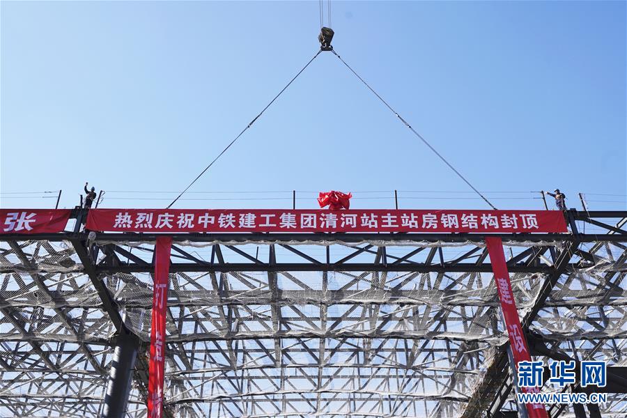 (2018年)10月17日,工作人員在吊裝鋼梁。新華社記者邢廣利攝