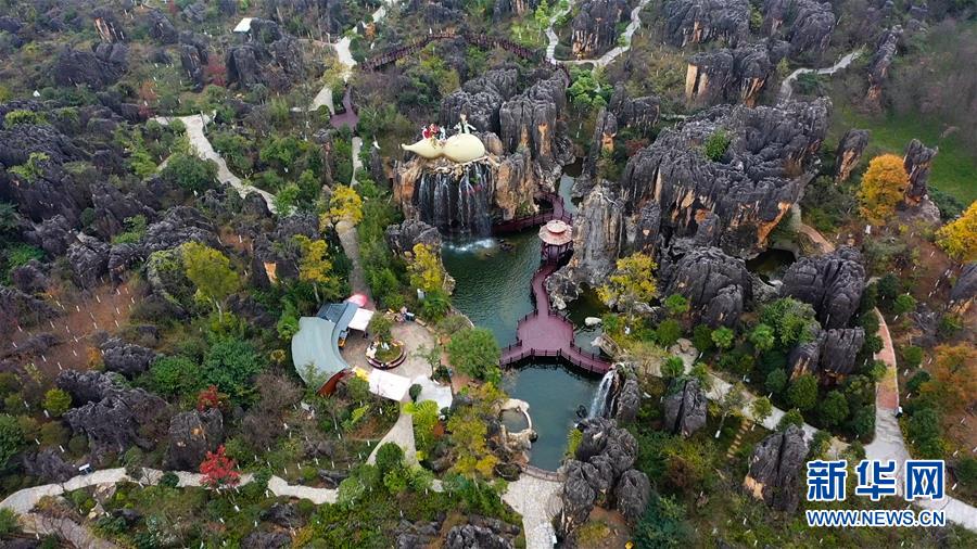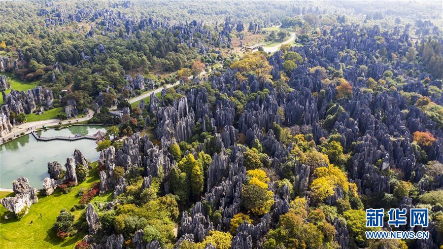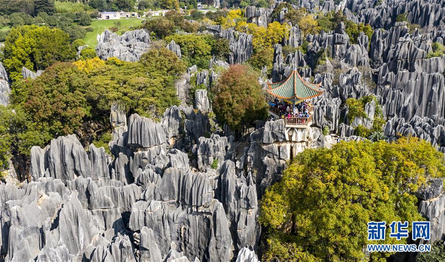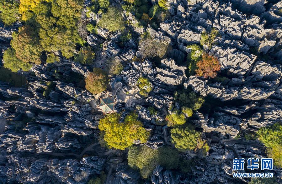 11月28日,空中俯瞰石林景區(qū)(無(wú)人機(jī)拍攝)。新華社記者江文耀攝