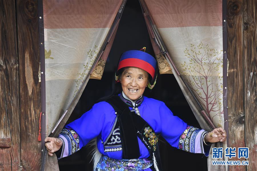 11月28日,65歲的大糯黑村村民王光英走出屋門(mén)。新華社記者王全超攝