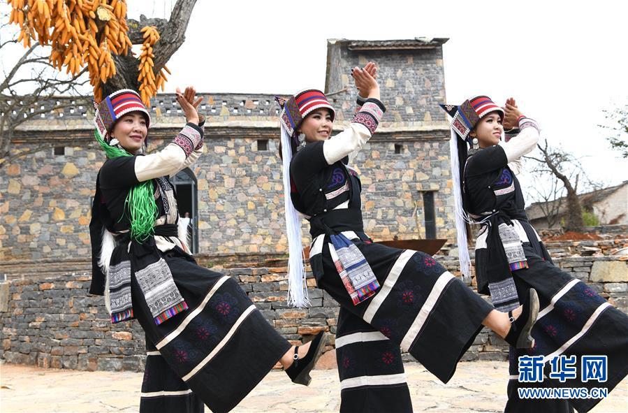 11月28日,大糯黑村村民在進(jìn)行彝族大三弦舞表演。新華社記者王全超攝
