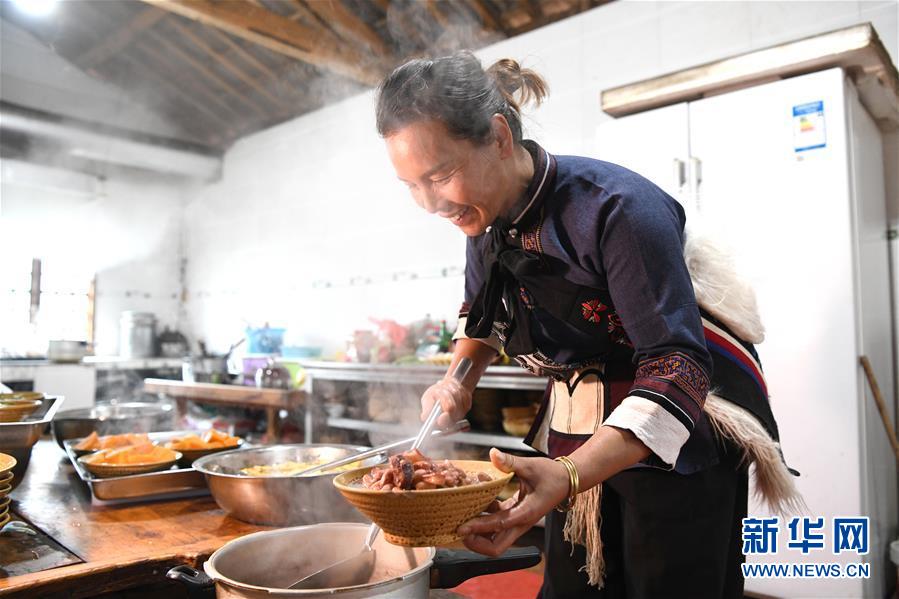 11月28日,42歲的大糯黑村村民李學(xué)芝在廚房?jī)?nèi)為游客準(zhǔn)備午餐。李學(xué)芝和丈夫畢興學(xué)經(jīng)營(yíng)著一家農(nóng)家樂(lè),生意紅火。新華社記者周華攝