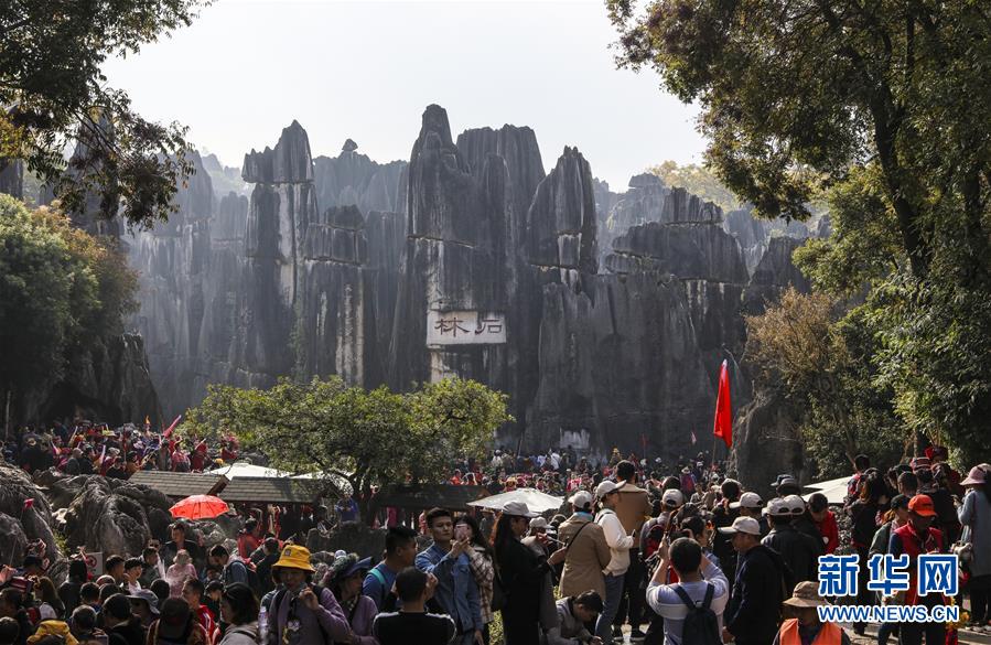 石林景區(qū)游客如潮(11月27日攝)。新華社記者蘭紅光攝