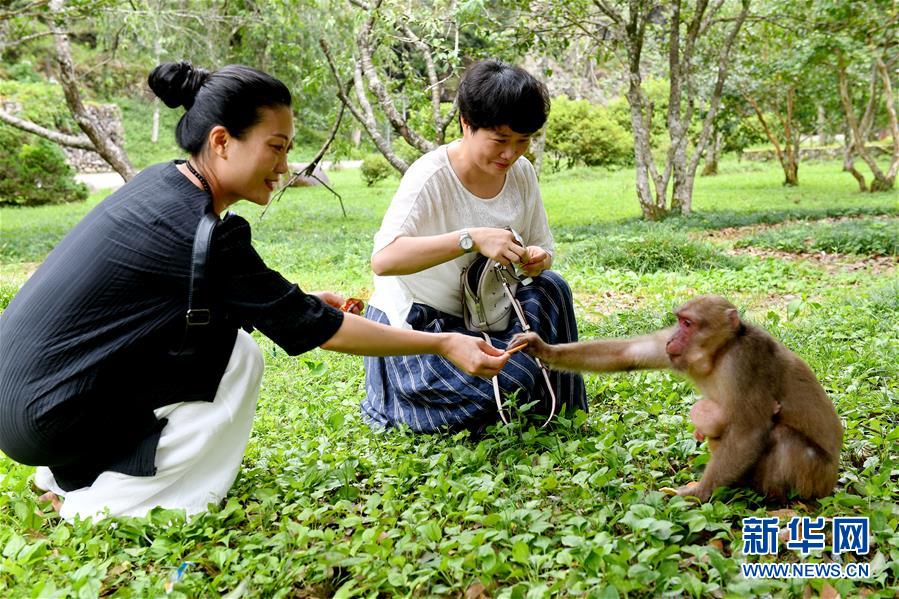 游客在武夷山自然保護(hù)區(qū)喂猴(7月20日攝)。新華社記者張國(guó)俊攝