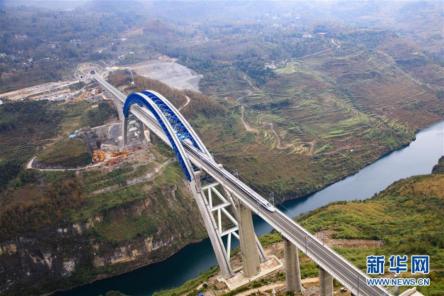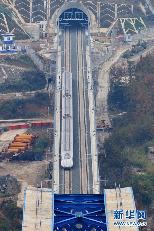12月2日,一輛試驗(yàn)列車駛過(guò)成貴高鐵鴨池河特大橋。當(dāng)日,正在進(jìn)行聯(lián)調(diào)聯(lián)試的成貴高鐵進(jìn)入全線拉通空載模擬運(yùn)行階段,試驗(yàn)列車將在成都到貴陽(yáng)區(qū)間內(nèi)全線路運(yùn)行。線路全長(zhǎng)650公里的成貴高鐵是我國(guó)“八縱八橫”高速鐵路網(wǎng)的重要組成部分,設(shè)計(jì)時(shí)速為250公里。新華社記者劉續(xù)攝