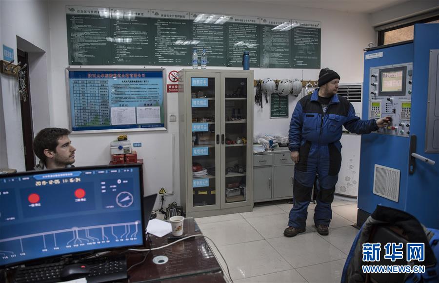 來(lái)自法國(guó)的技術(shù)人員在測(cè)試華山太華索道制動(dòng)系統(tǒng)(12月5日攝)。新華社記者陶明攝
