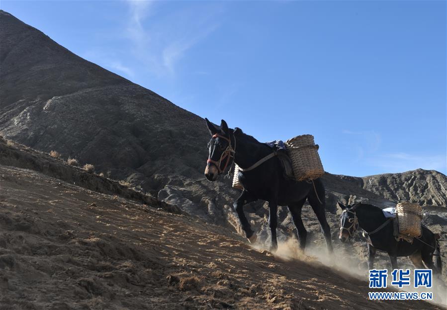 12月6日,騾馬隊馱負(fù)工程物料前往山頂塔基施工現(xiàn)場。新華社記者侯捷攝