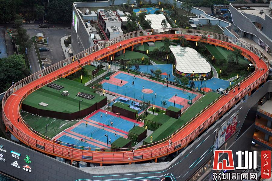 2018年5月22日,這個(gè)天際運(yùn)動(dòng)場也是西南首個(gè)購物中心之上的活力運(yùn)動(dòng)場,占地面積17000平方米,集4個(gè)乒乓球場、3個(gè)羽毛球場、1個(gè)標(biāo)準(zhǔn)籃球場和一條環(huán)形天空跑道。